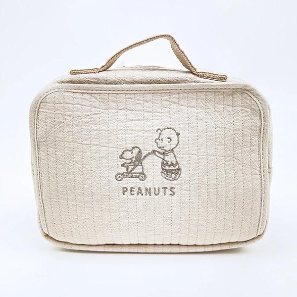 小さいお子様のおむつや肌着を1つにまとめて収納できるスヌーピーのお出かけポーチです。ウェットティッシュなどをサッと取り出し可能◎また旅行やお散歩などのパッキン時に細々としたアイテム(肌着やおまちゃ)は、メイン部分にたっぷり収納可能◎