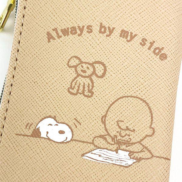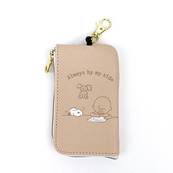 PEANUTデザインのキー&パスポーチです。人気のデザインシリーズです。本体裏には2か所のカードポケット。内側にはキーフックが3つ付いています。リールが付いているのでかばんに付けたまま使えて便利です♪