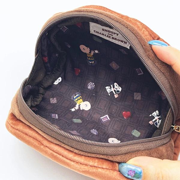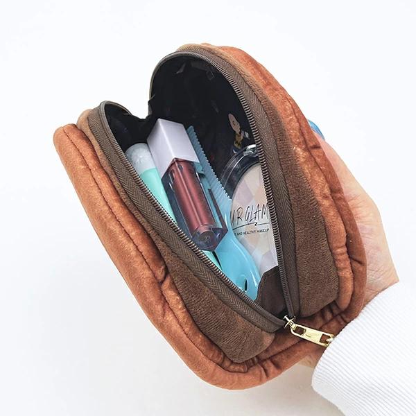 まるでクリームサンドみたいなポーチです。焼き色が入っているのがポイント♪見た目はボリュームがありますが、中身はしっかり入る広さがあり優秀!裏生地もカワイイ◎