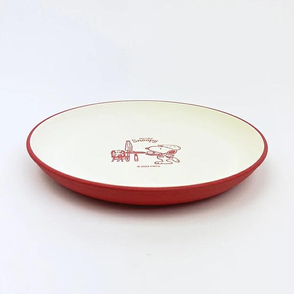 スヌーピーの抗菌ラウンドプレートです♪落ち着いたカラーでいつもの食卓が、カフェ風でおしゃれに♪軽くて割れにくい素材で、小さなお子様から年配の方まで安心して使えます☆彡食洗機・電子レンジ使用可◎