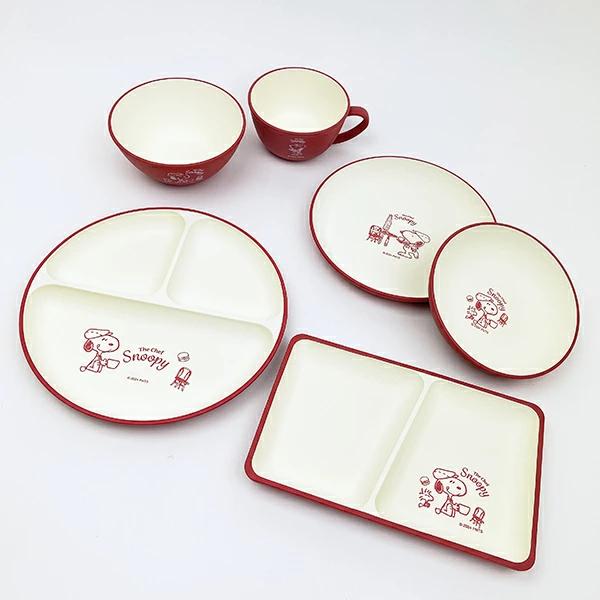 スヌーピーの抗菌ラウンドプレートです♪落ち着いたカラーでいつもの食卓が、カフェ風でおしゃれに♪軽くて割れにくい素材で、小さなお子様から年配の方まで安心して使えます☆彡食洗機・電子レンジ使用可◎