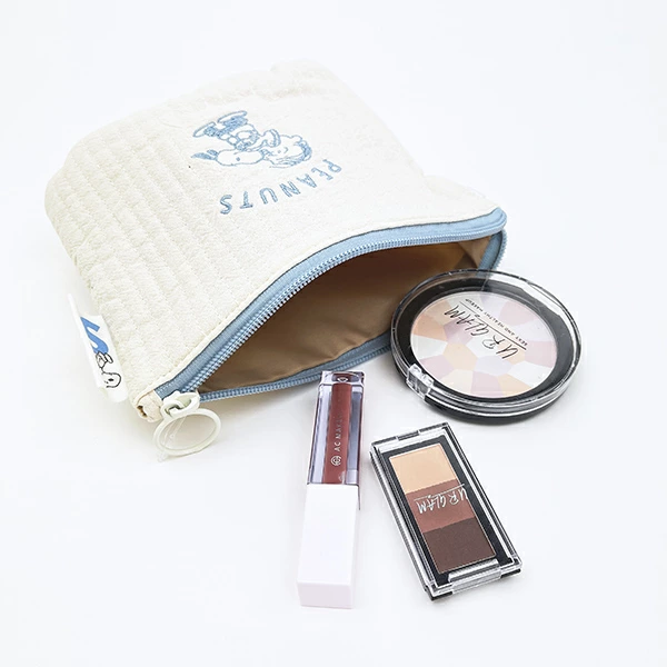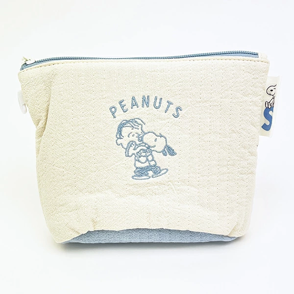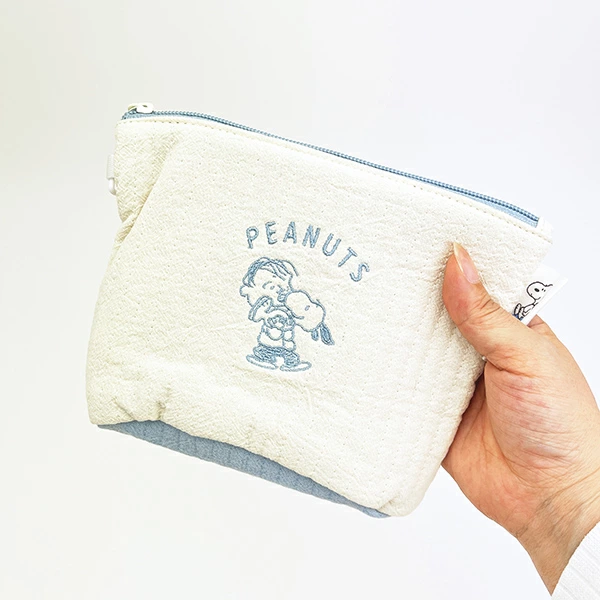 生地と生地の間に綿を入れ上から刺繍するキルト刺繍の生地で、触り心地がふわふわなスタンドポーチ♪メイクポーチやちょっとした小物入れに使える、シンプルなデザインがとってもおしゃれ★