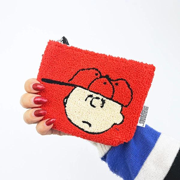 チャーリーブラウンのさがらミニポーチです♪表面は、さがら刺しゅうの肌触りの良いモコモコ感で、背面は合皮で素材が違うためとってもおしゃれ♪リップやイヤホンなどバッグの中で迷子になりがちな小物を整理するのに、ぴったり☆彡