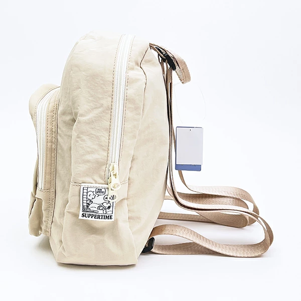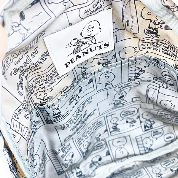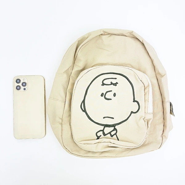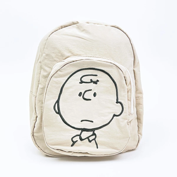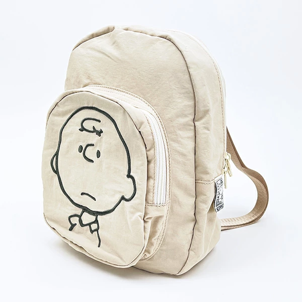 チャーリーブラウンのミニリュックです♪くすみカラーに、チャーリーブラウンのダイカットポケットがとってもキュート♪外側に大きなポケットがついていて使い勝手抜群!お子さんが背負うのにも軽量で、オススメです◎おもちゃやお菓子をたくさん入れておでかけしましょう☆彡