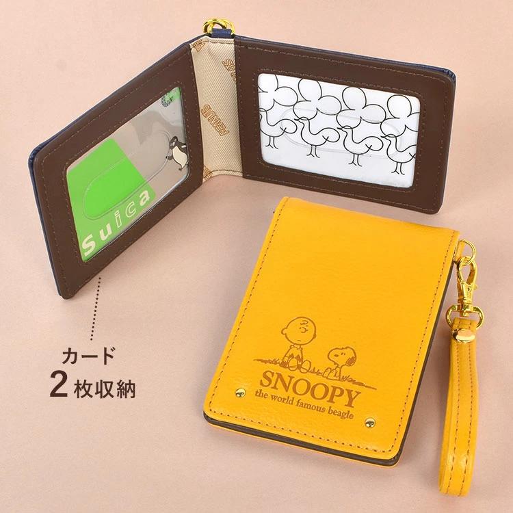 【二つ折りパスケース】ICカードを2枚収納できる、スヌーピーの二つ折りタイプのパスケース。スナップボタンが付いたストラップ付きで、バッグに簡単に取り付けられます。通勤や通学など日常使いにぴったり。落ち着いたデザインで年齢問わず使えます。ギフトやプレゼントにもオススメのアイテムです♪