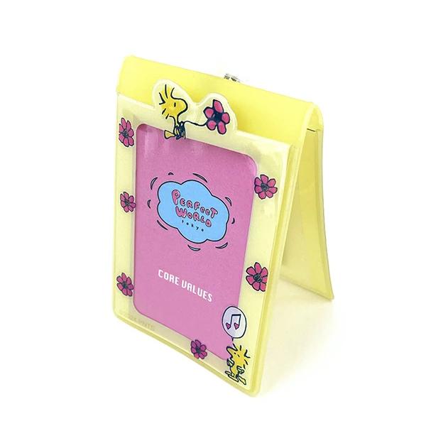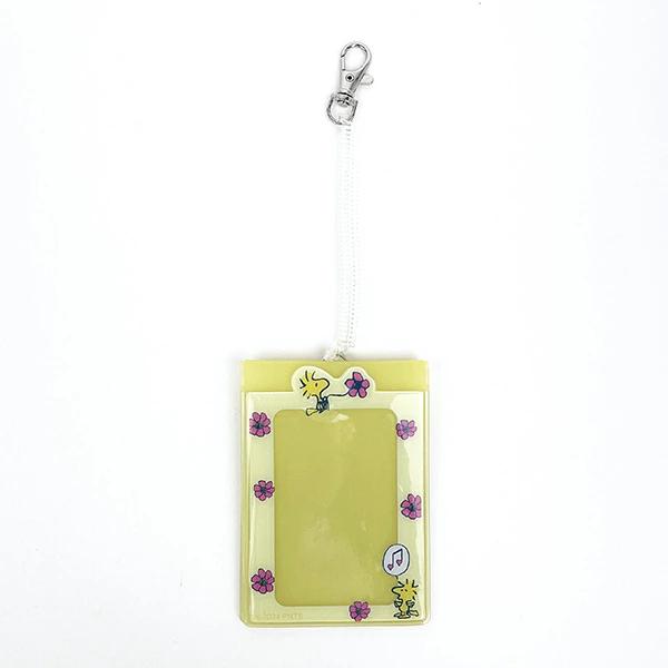 スヌーピーのフォト&パスケースです♪折れ曲がりを防止するプレート付き。二つ折りで自立するのでカードスタンドとしてお部屋に飾ったり、カフェなどに食事と一緒に並べて写真を撮ることもできるので推し活にもピッタリ♪一般的なトレカ(54×86mm)をぴったり収納。ダブルポケットでICカード2枚を使い分け!