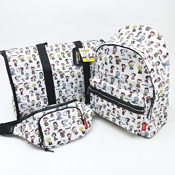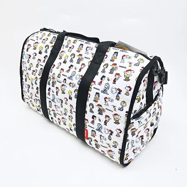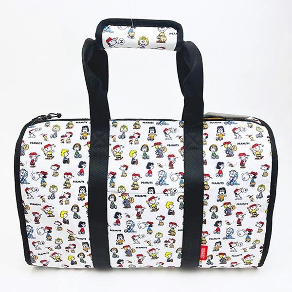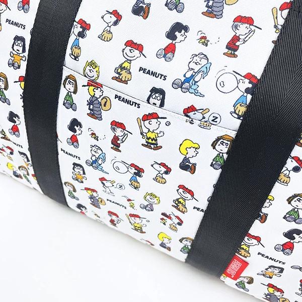スヌーピーのボストンバッグです♪野球をしているスヌーピーたちが、とってもキュート♪旅行や遠出にたくさん荷物を入れる場面にピッタリ!外側と内側にもポケットがたくさんあるため、小物の整理にも◎ショルダーベルトも付いています♪総柄で、コーディネートのアクセントになるのと、お子さんと兼用できます♪同じデザインでリュックとボディバッグもあるので、お揃いで持つのもいいですよ☆彡