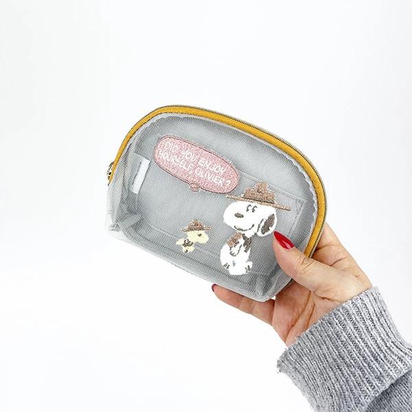 シンプルなラウンドポーチ。全面がメッシュ生地ですが、内側にポケットありでスッキリ収納◎