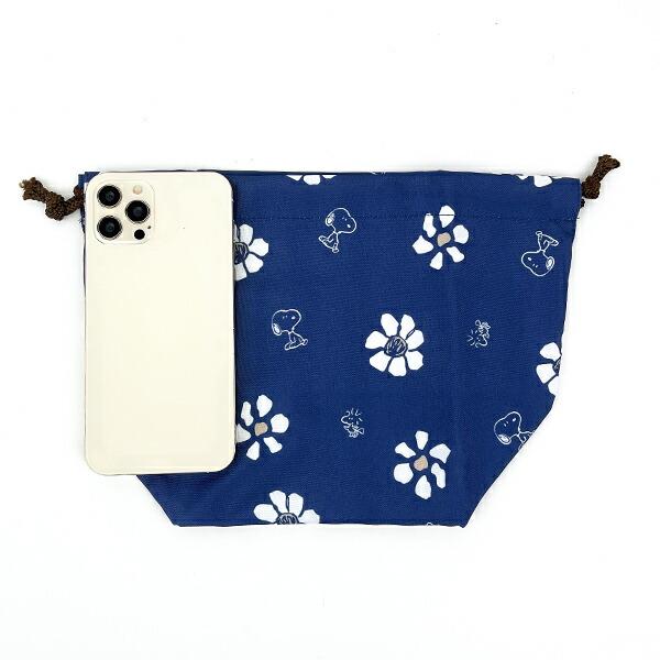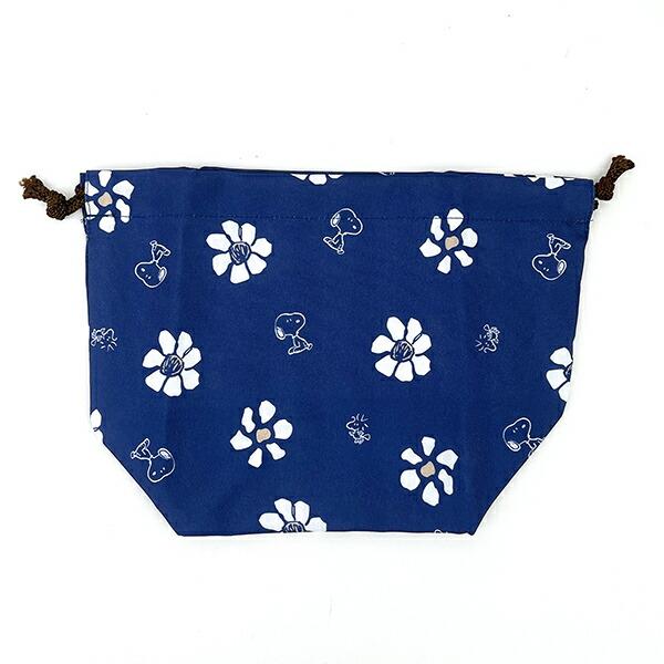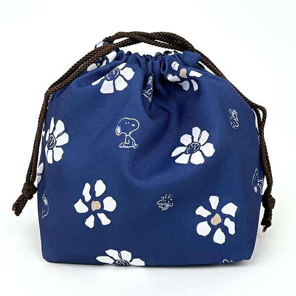 ピーナッツデザインのランチ巾着です♪両面絵柄入りでおしゃれなデザイン☆彡幅広いマチがあり、お弁当箱など傾けずに持ち運び◎通常の立体巾着としてもかわいい♪