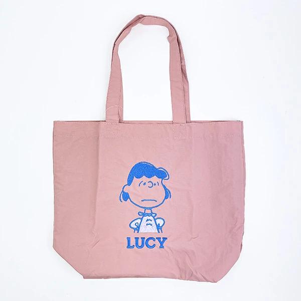 ルーシーのトートバッグです♪アップリケ刺しゅうがとってもキュート♪ナイロン素材なので、軽くて丈夫なのと急な雨でも安心♪内ポケット付いているので、スマホやイヤホンなど小物入れにピッタリ♪A4サイズがすっぽり入るサイズで、通学や通勤に大活躍☆彡