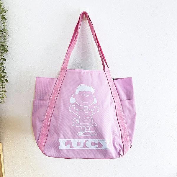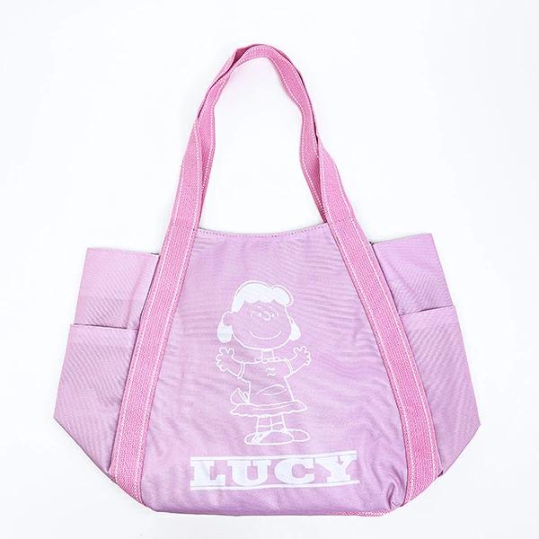 スヌーピー(ルーシー)のバルーントートバッグです。大容量なので荷物の多いママさんにもおすすめ♪内ポケット付きなので普段使いにもぴったり☆通勤・通学やマザーズバッグとして大活躍間違いなしのアイテムです♪