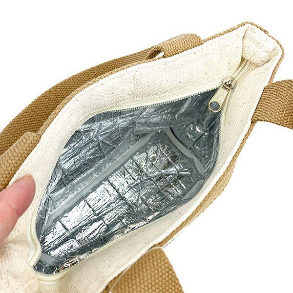 上部がファスナーになっているランチトート。内側がアルミなので保温・保冷効果あり!