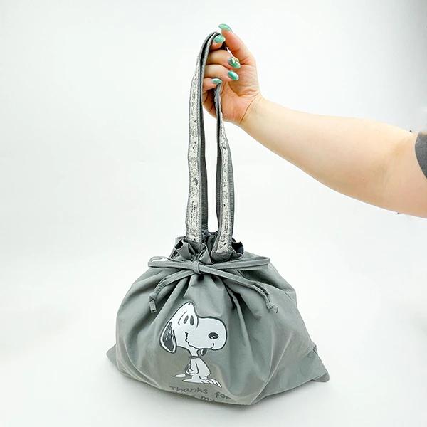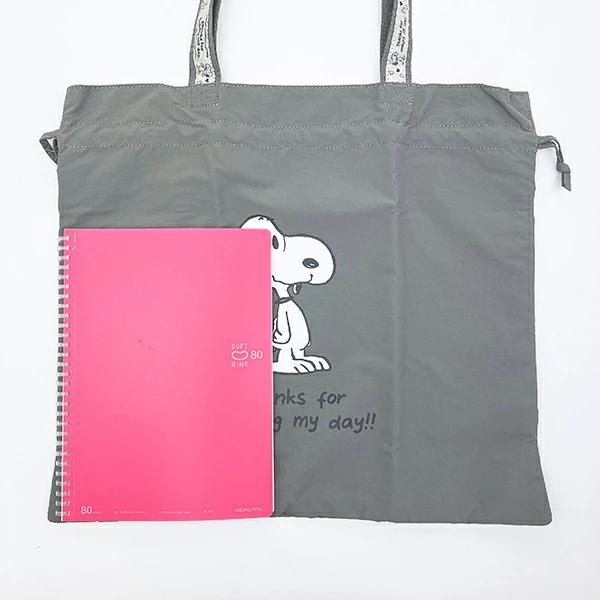 スヌーピーの巾着トートバッグです♪紐を絞れば巾着仕様で可愛く、口を開くとシンプルトートになるWAY仕様♪サイズは大容量なのに、軽くて便利♪旅行での移動や、日常のサブバッグに◎シンプルデザインで大活躍間違いなし☆彡