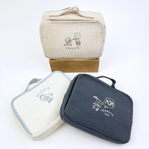 小さいお子様のおむつや肌着を1つにまとめて収納できるスヌーピーのお出かけポーチです。ウェットティッシュなどをサッと取り出し可能◎また旅行やお散歩などのパッキン時に細々としたアイテム(肌着やおまちゃ)は、メイン部分にたっぷり収納可能◎