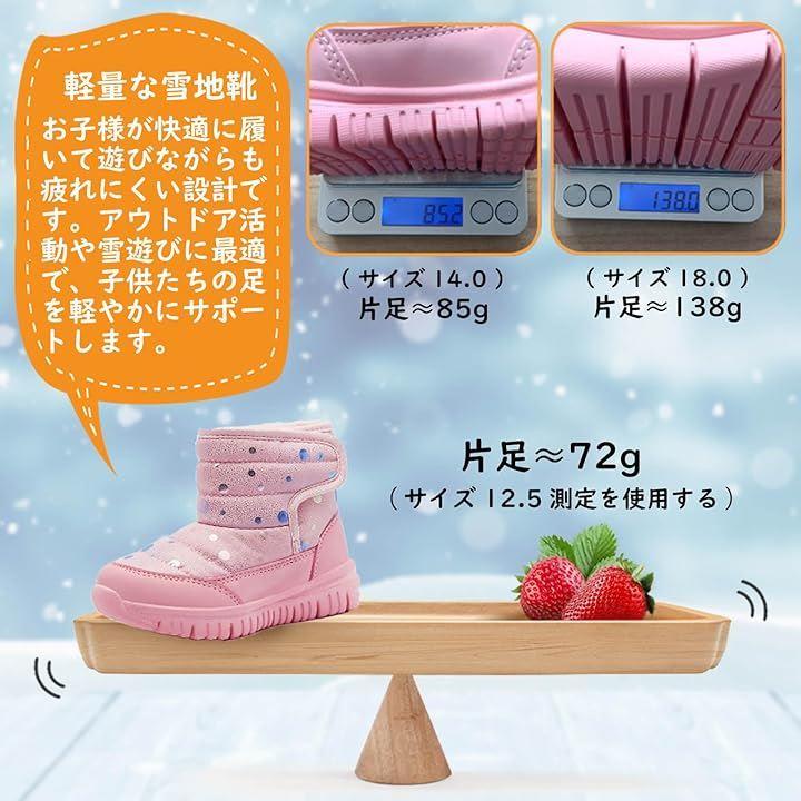 長時間のアウトドア活動や雪遊びに最適で、子供たちの足を軽やかにサポートします。