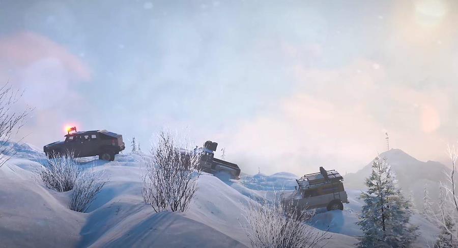 広大なマップを開拓しながらミッションをクリアしよう本作の舞台はアメリカのミシガン州やアラスカ州をベースとした雪原となっており、前作『マッドランナー』に比べて約4倍の30平方キロメートルといった広大なマップ。雪原や分厚い氷に覆われた湖、時には猛吹雪の中を走り、オフロードトラックで資材を届けるミッションをクリアする。