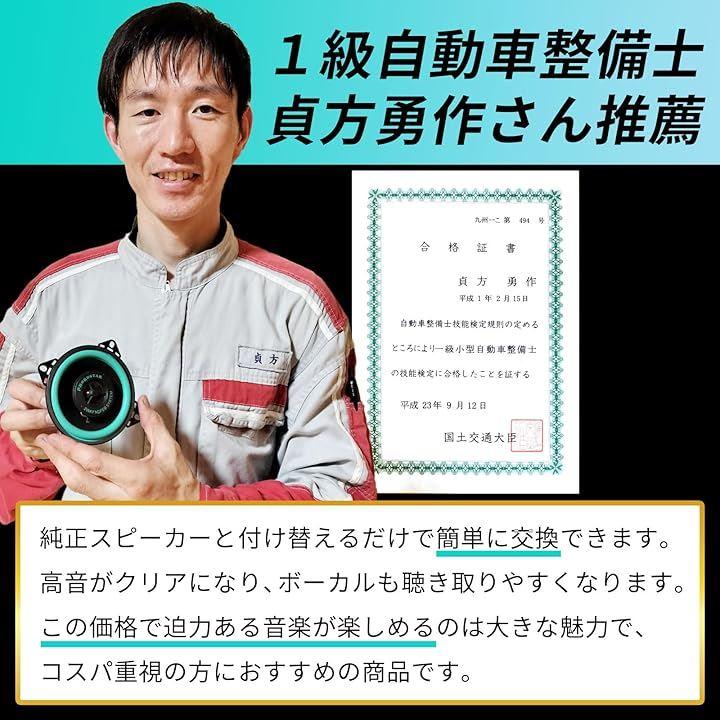 「商品詳細」内容:車用スピーカー2個 音声感度:90dB、インピーダンス:4Ω、周波数範囲 (Hz):90Hz-20000Hz、出力:50W-150W、電圧:12v-24v *本製品は現在、旧パッケージ(50~100W表記)と新パッケージ(50~150W表記)の商品が混在しておりますが、いずれの商品もメーカー確認済みで、実際には50~150Wまで安全にご使用いただけます。