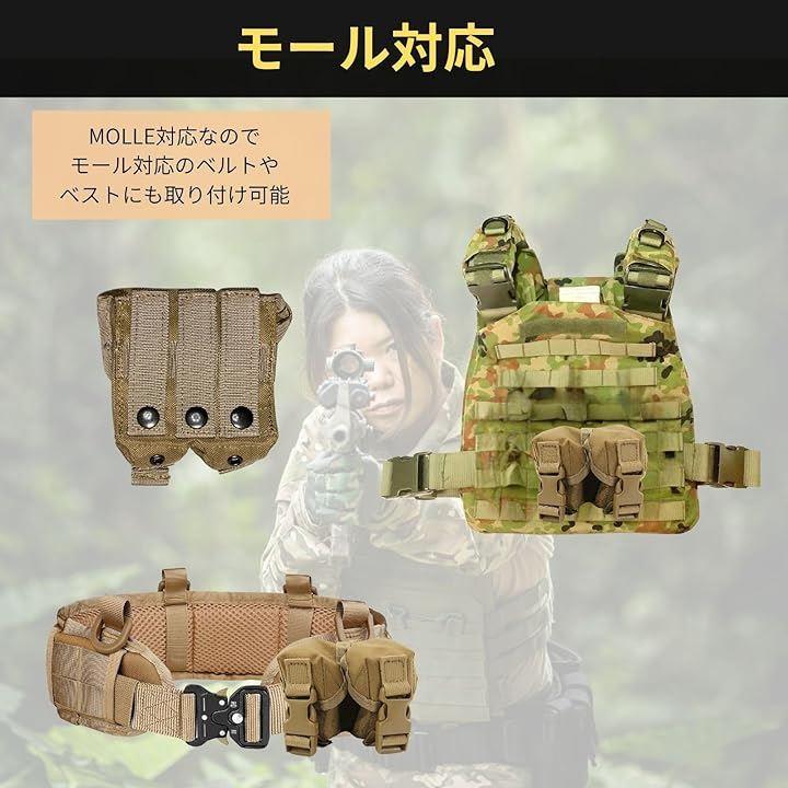 装備ベルト、モールシステムへの装着も対応しており、サバゲー装備を効率的にまとめることができます。