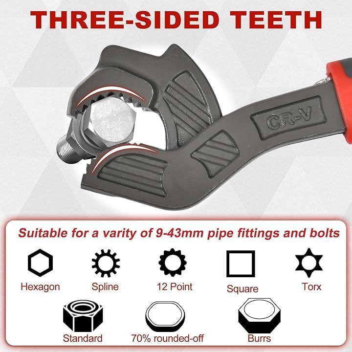 滑り止めの3面歯:さまざまなサイズのナット、パイプ、丸いチューブをしっかりと噛んでロックします。