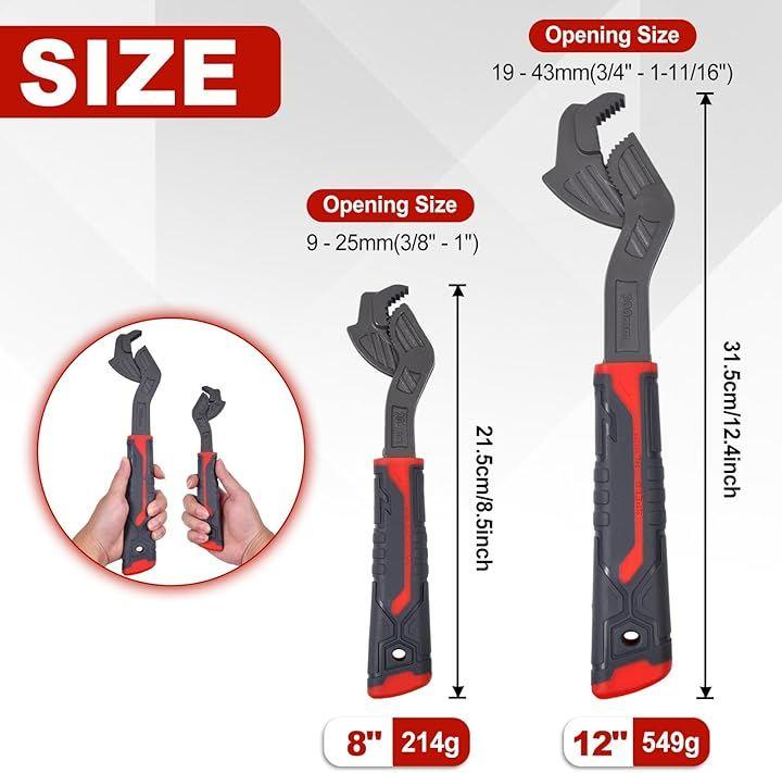 アプリケーション:パッケージには、毎日のニーズを満たすために8インチ(開口部サイズ:9-25mm)と12インチ(開口部サイズ:19-43mm)の2個の自動調整レンチが含まれており、簡単に保管できるポータブル収納バッグが付属しています。
