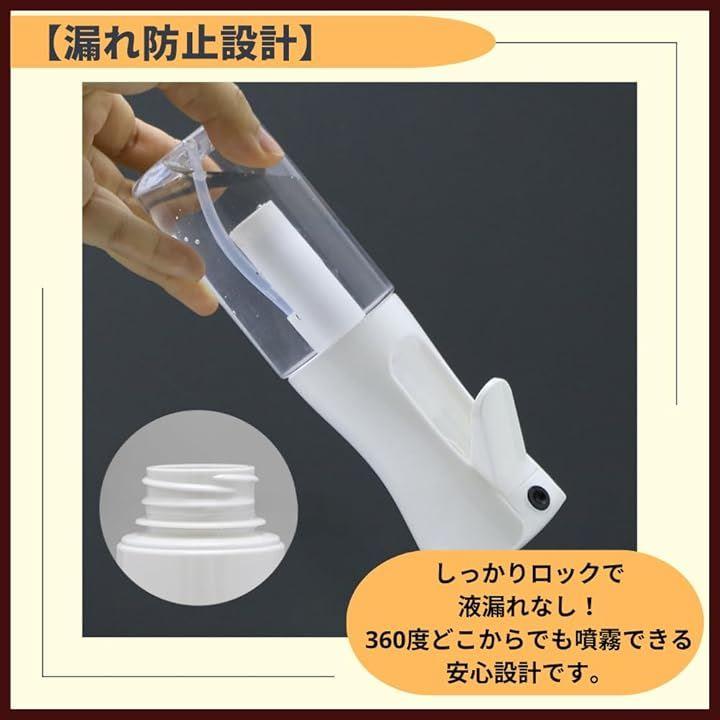「漏れ防止設計」しっかりロックで液漏れなし。360度どこからでも噴霧できる安心設計です。