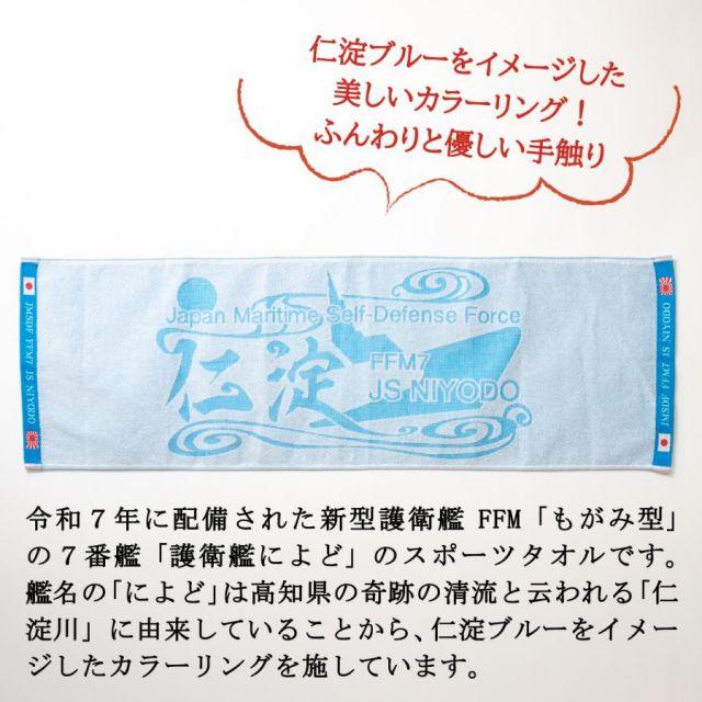 商品名:スポーツタオル ( 海上自衛隊 護衛艦によど )海上自衛隊グッズ 自衛隊グッズ タオル スポーツ スポーツ観戦 部活 アウトドア 綿 綿100%令和7年に配備された新型護衛艦FFM「もがみ型」の7番艦「護衛艦によど」のスポーツタオルです。FFMとは「フリゲート」を意味する「FF」と機雷(Mine)や多用途性(Multipurpose)を意味する「M」を組み合わせた海上自衛隊独自の艦種記号です。艦名の「によど」は高知県の奇跡の清流と云われる「仁淀川」に由来していることから、仁淀ブルーをイメージしたカラーリングを施しています。ジャガード織なので、柄全体がふっくらと厚みのある立体的な仕上がりになっています。ふんわりとした優しい肌触りで、吸水性も抜群です。暑い時期に汗を拭きとるのはもちろん、寒い時期にはスポーツ時のマフラー代わりに使用してもGood!首にかけやすい長さで、運動中でも邪魔になりにくいのが嬉しい♪●カラー:ブルー●大きさ:約110cm×35cm●素材:綿100%