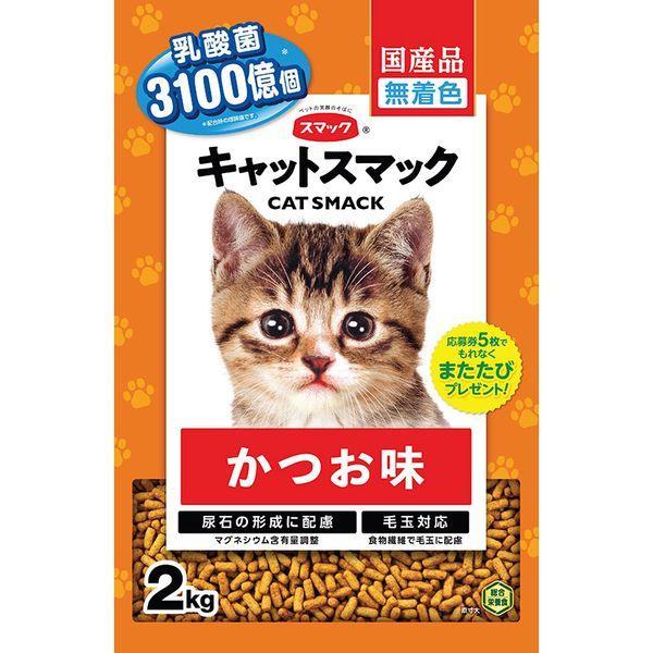 スマック 4970022023515 キャットスマック かつお味 2kg乳酸菌を配合した無着色フード・猫の大好きなかつおのエキスを熟成させて、旨味をギュッと一粒一粒に閉じ込めました。