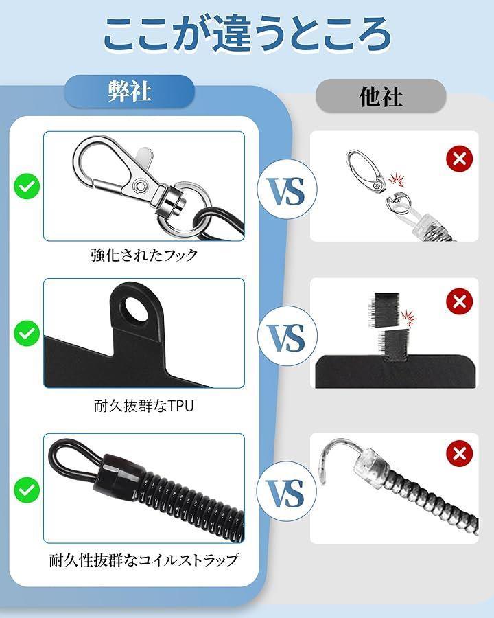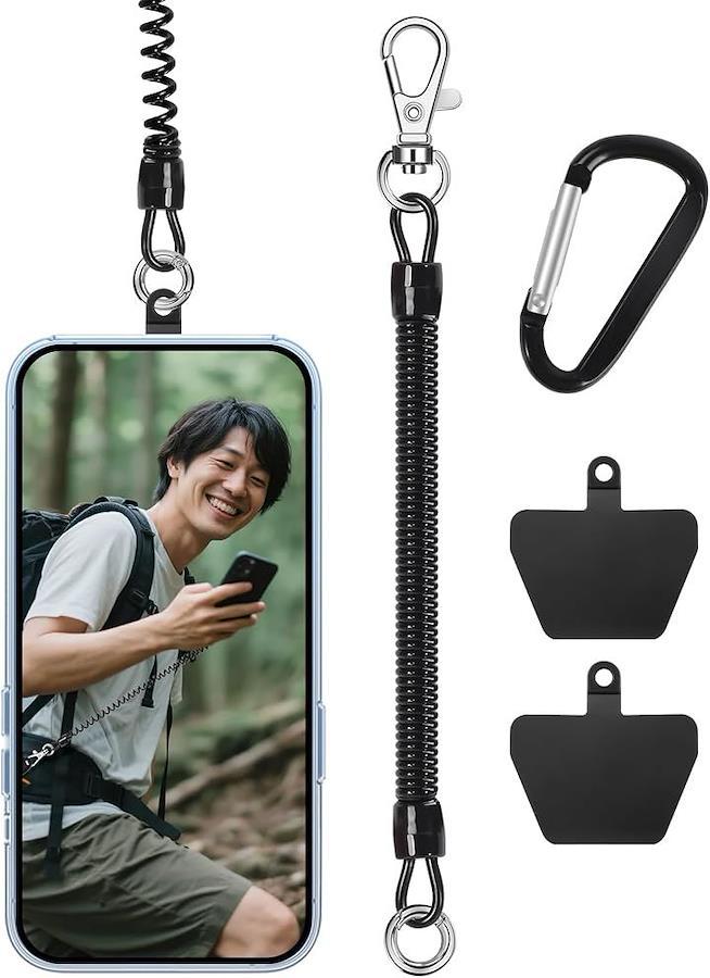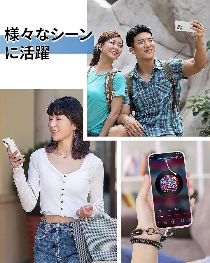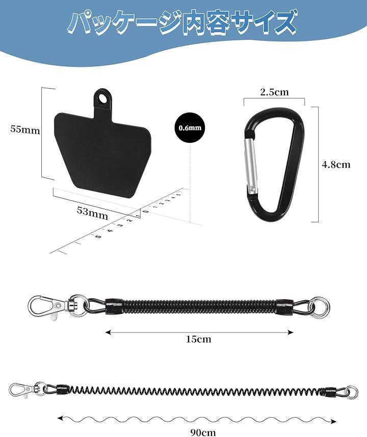 「全機種対応」コイルストラップx1本、ストラップホルダーx2枚、カラビナx1個(スマホケース付属しない) ・iPhone/Samsung/Huawei兼用