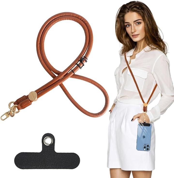 ファッション感と実用性を両立させて、レザー素材と金属製のバックルを採用し、スマホに取付して高級感とエレガント感を醸し出し、様々なスマホケースに相性がよい。