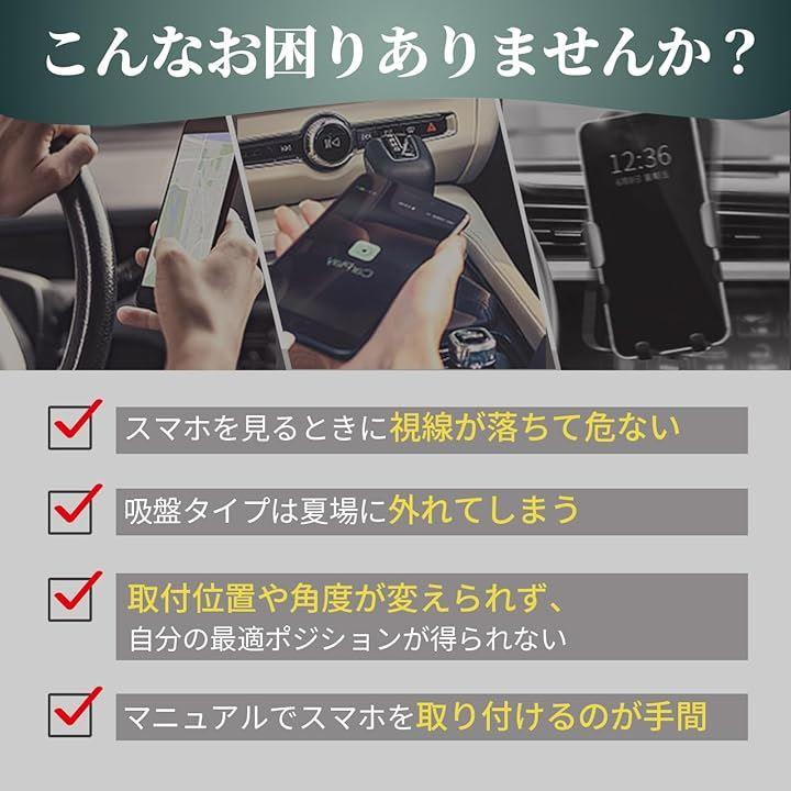 「高い安全性」他のスマホホルダーと異なり、高い位置で固定することができるため、視線がまっすぐのままをキープできます。 スマホに目を落として脇見することなく、安全なドライブをサポートします。