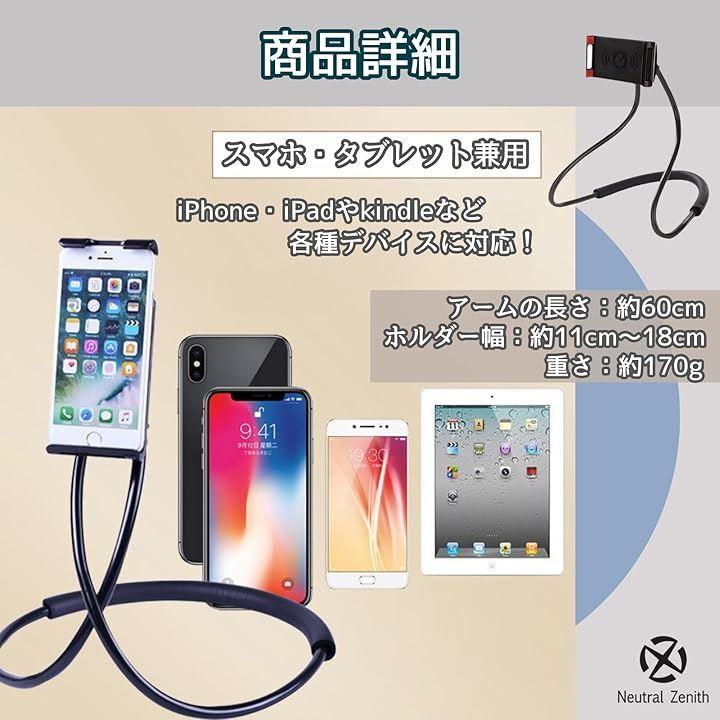 「商品詳細」アームの長さ:約60cm ホルダー幅:約11cm~18cm 重さ:約170g *ほとんどのスマートフォンやタブレットなどに対応しています。