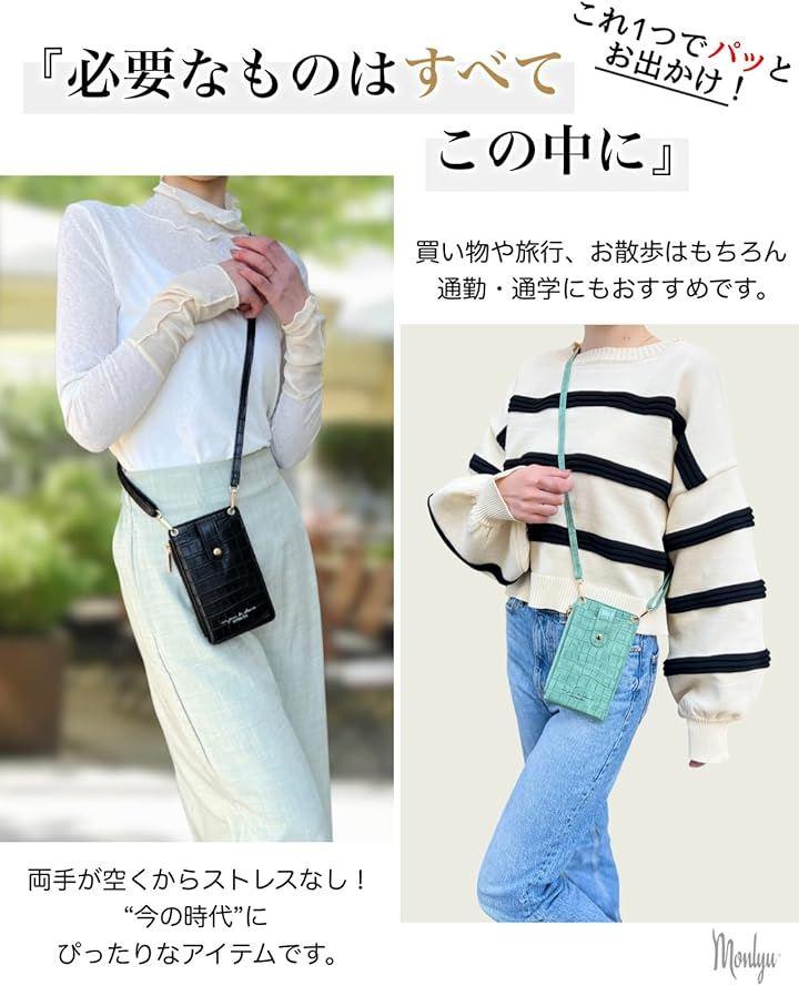 「仕様・サイズ」 カード入れx5・スマホポケットx1・ファスナーポケットx1 (サイズ)縦17.5cm 横10cm マチ2cm ショルダーベルト65-125cm(*ご使用のスマホケースにより収納できない場合もございますのでご注意ください。