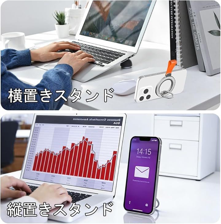 折り畳めば通常のスマホリングとしても使用可能。
