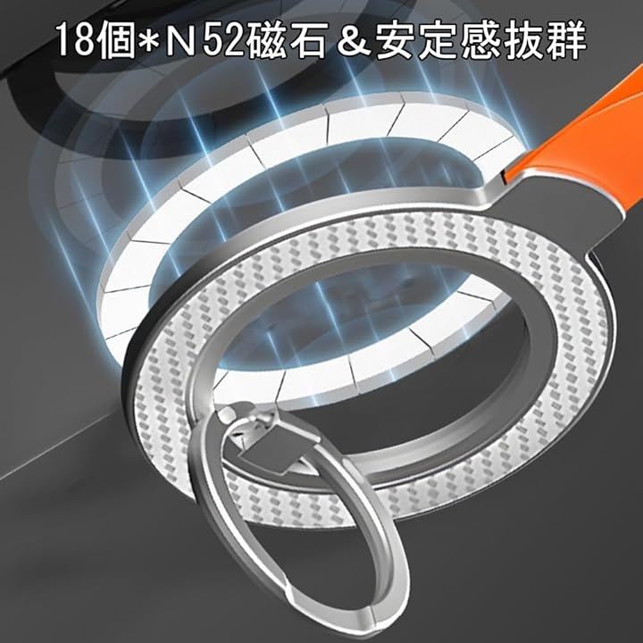 「強力マグネット設計 & 多機能リング」 18個の超強力マグネットを搭載したマグセーフ リング。