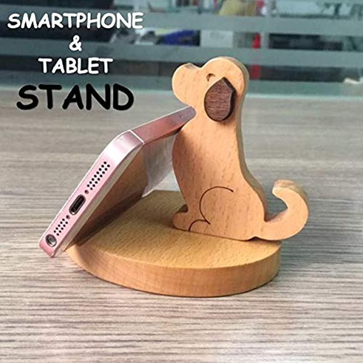 ・犬型が可愛らしい、コンパクトで軽量なので持ち運びやすい卓上のスマホスタンドホルダーです。