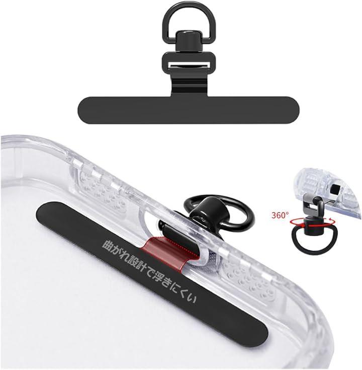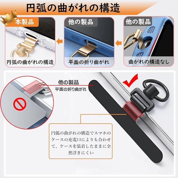 「浮きにくい折り曲がれ設計」:目前市場におけるの大部分のストラップホルダーはケースが浮きやすいの問題点があり、この難点を解決しように、タグパッチが金属リングと本体の間での連結金属部分は折り曲がれて段差になることを構造して、ケースを装着したままに全然浮きにくい、さらに本ストラップホルダーを挟んだままに、充電ケーブルもワイヤレス充電も支障なくできます。