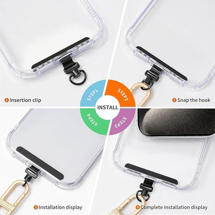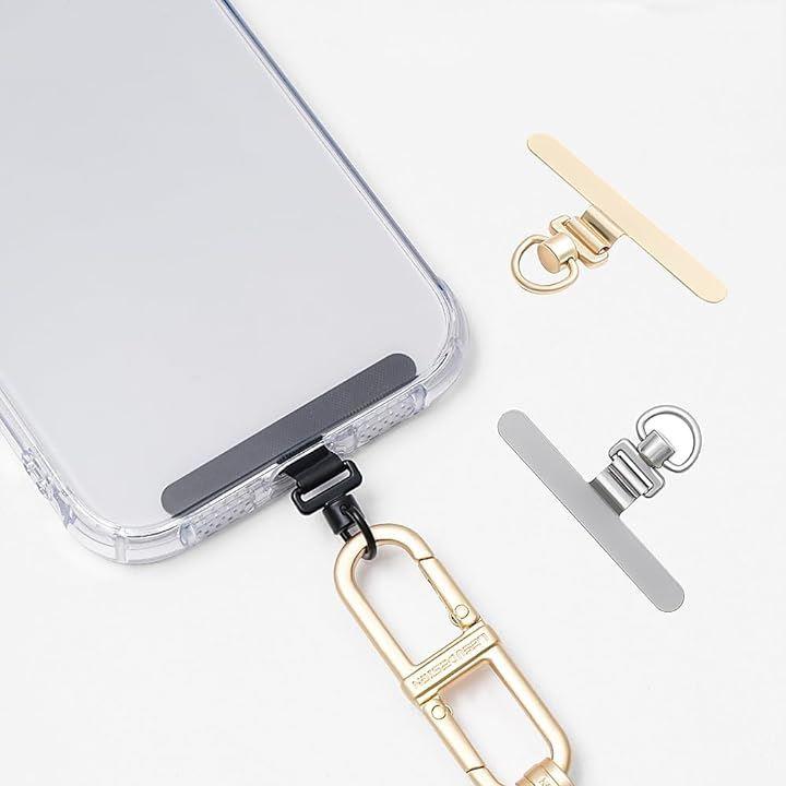 Ultra-thin 0.2mm Smartphone Strap Holder, 360° Swivel, No Floating, Bendable Design, Metal Tag Patch, Stainless Steel, Plated Finish, Slim Phone Strap Holder