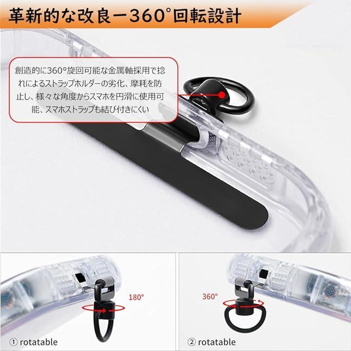 さらに、360°回転設計により、様々な角度からスマホを円滑に使用可能、スマホストラップも結び付きにくい、使用便利さを非常ににアップさせます。