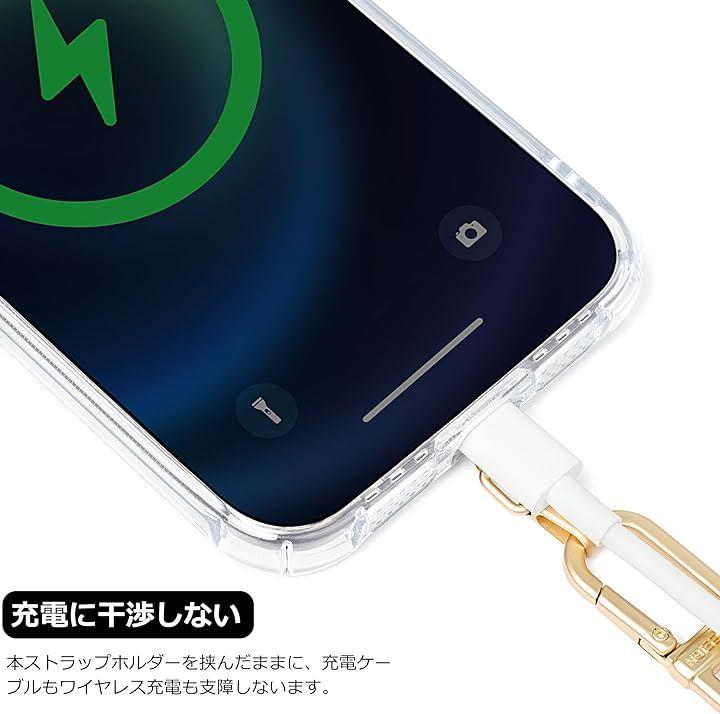 このスマホストラップホルダーは金属リングと本体の間での連結金属部分は折り曲がれて段差になり、ケースを装着したままに全然浮きにくい、さらに本ストラップホルダーを挟んだままに、充電ケーブルもワイヤレス充電も支障しないます。