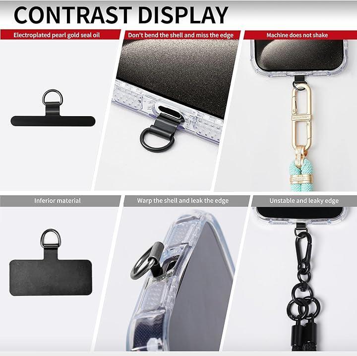Smartphone Strap Holder with Metal Tag Patch, Slim and Durable, Holds up to 10kg, Clips to Smartphone Case, Compatible with All Models, Charging Safe, Prevents Loss