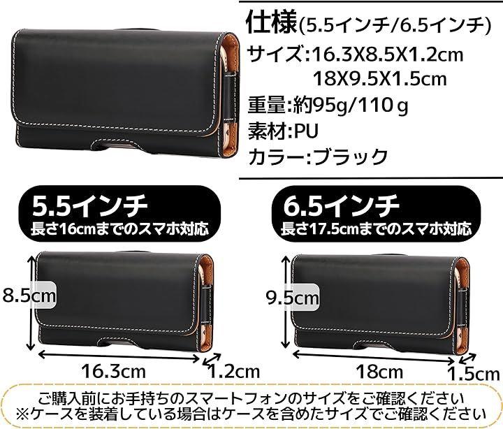 「仕様」サイズ:16.3X8.5X1.2cm / 18X9.5X1.5cm、重量:約95g、素材:PU、カラー:ブラック