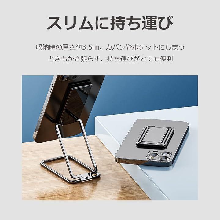 「収納時はとてもスリム」収納時の厚さ約3.5mmでスタンドを使用しないときも邪魔になりにくい設計。