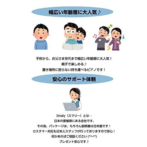 ●デュアルスピーカー内蔵で強力な低音を実現、別途スピーカーを準備しなくて大丈夫●イヤホン使用で周りを気にせず思いっきり演奏が楽しめる ※イヤホンは付属なし●小さく丸めてコンパクト収納可能●音量調節10段階●デモ曲8曲収録●5種類の音色に変更可能●USB電源式 (DC5V 入力2.5W/出力2W)