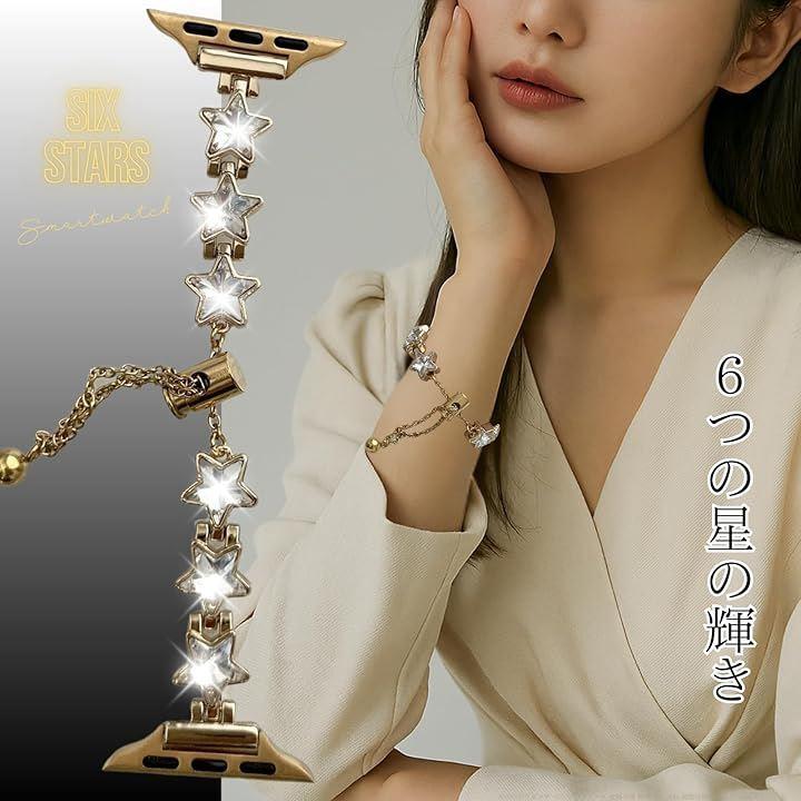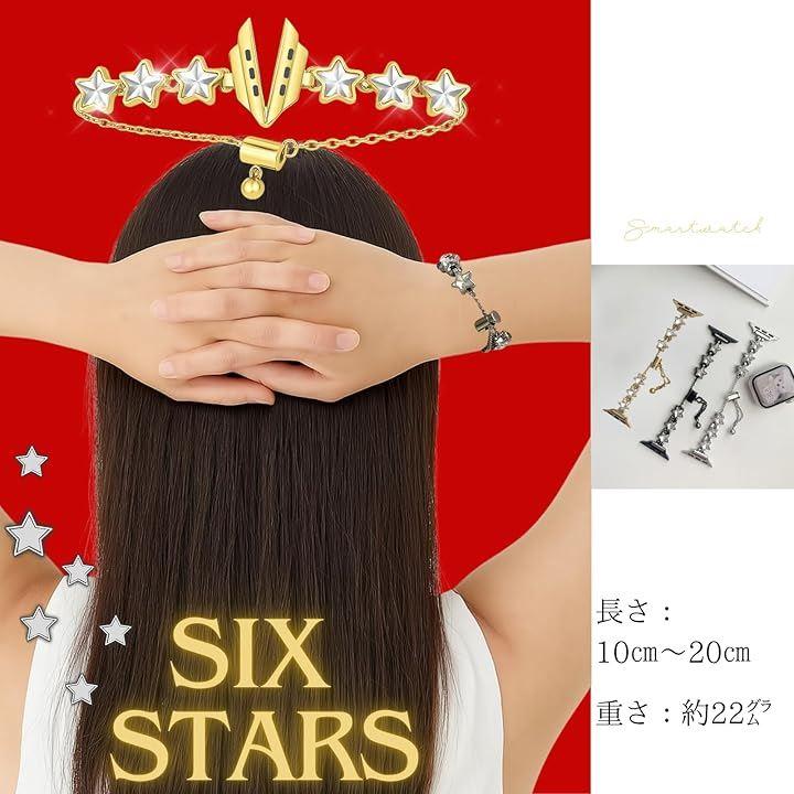 「星の輝きがアクセント。華やかでクールなデザイン」 バンド全体にあしらわれた6つのキラキラ輝く星のモチーフが、手元にさりげない個性を与えます。