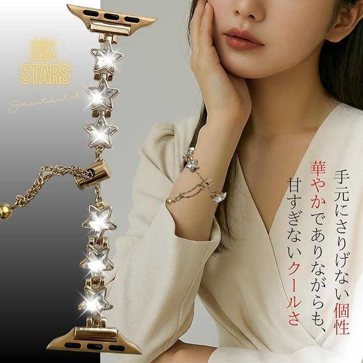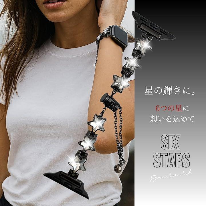 「星の輝きがアクセント。華やかでクールなデザイン」 バンド全体にあしらわれた6つのキラキラ輝く星のモチーフが、手元にさりげない個性を与えます。