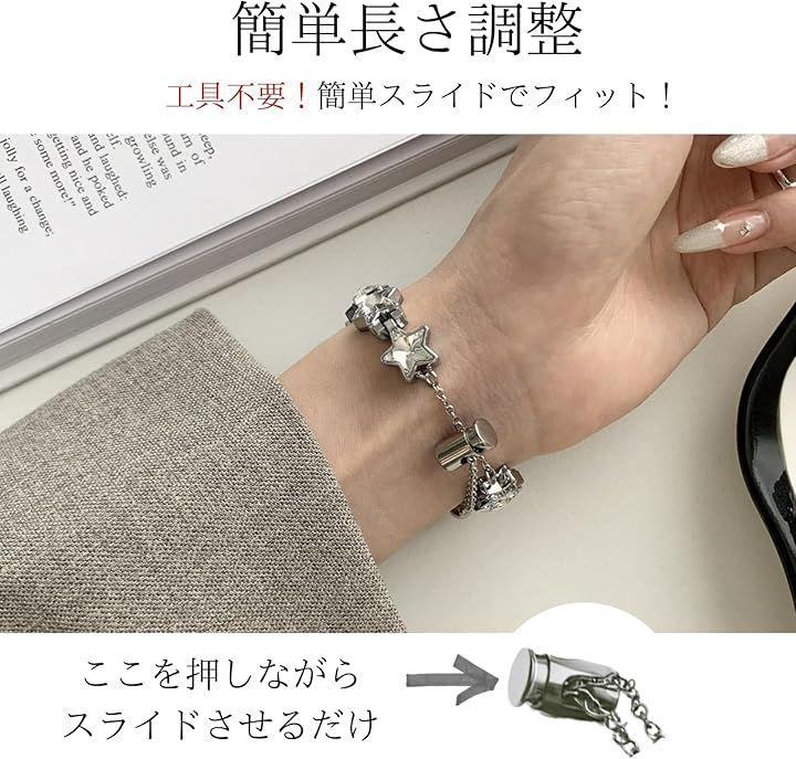 チェーン部分に付いたストッパーをスライドさせるだけで、約10cmから20cmまで自由自在にバンドの長さを変更できます。