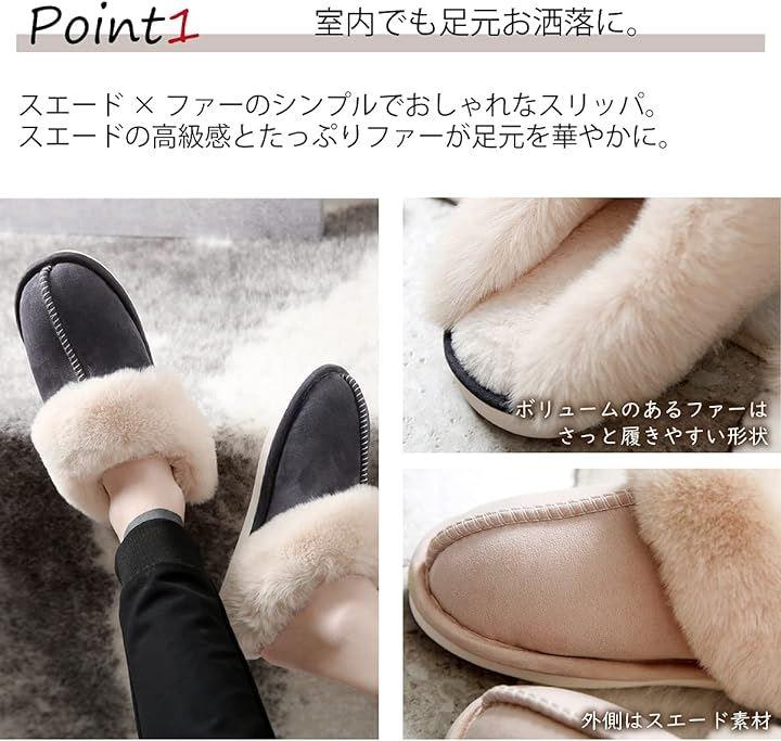 スエードxファーのシンプルでおしゃれなスリッパ。
