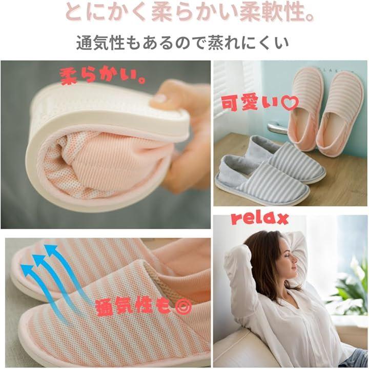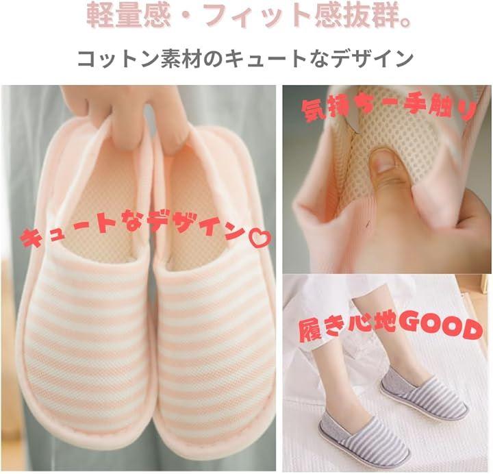 優しいコットン素材でおしゃれなボーダーデザインの室内用スリッパです。