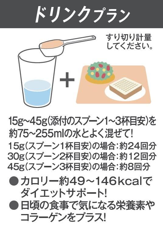 ▼1食おきかえプランの場合、60gを約300~340mlの水とよく混ぜてご使用ください。