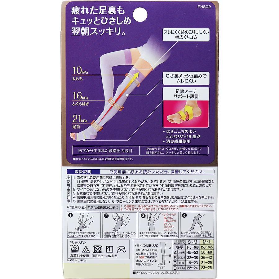 疲れた足裏もキュッとひきしめ翌朝スッキリ。●足裏アーチサポート設計。土ふまずも足の甲もリフレッシュ!●ズレにくく跡のこりしにくい幅広くちゴム。●ひざ裏メッシュ編みでムレにくい。●消臭繊維使用。●医学から生まれた段階圧力設計。足首から上へいくほど圧力が低くなる設計で脚を軽やかに、スッキリと美しく整えます。●M-Lサイズ・ラベンダー・ひざ上丈。